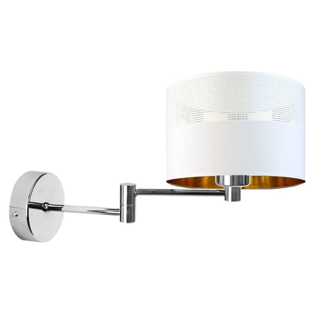 Lysne Brage Glam kinkiet z przegubem E27 abażur biały z ażurem i złotym wnętrzem, stelaż chrom