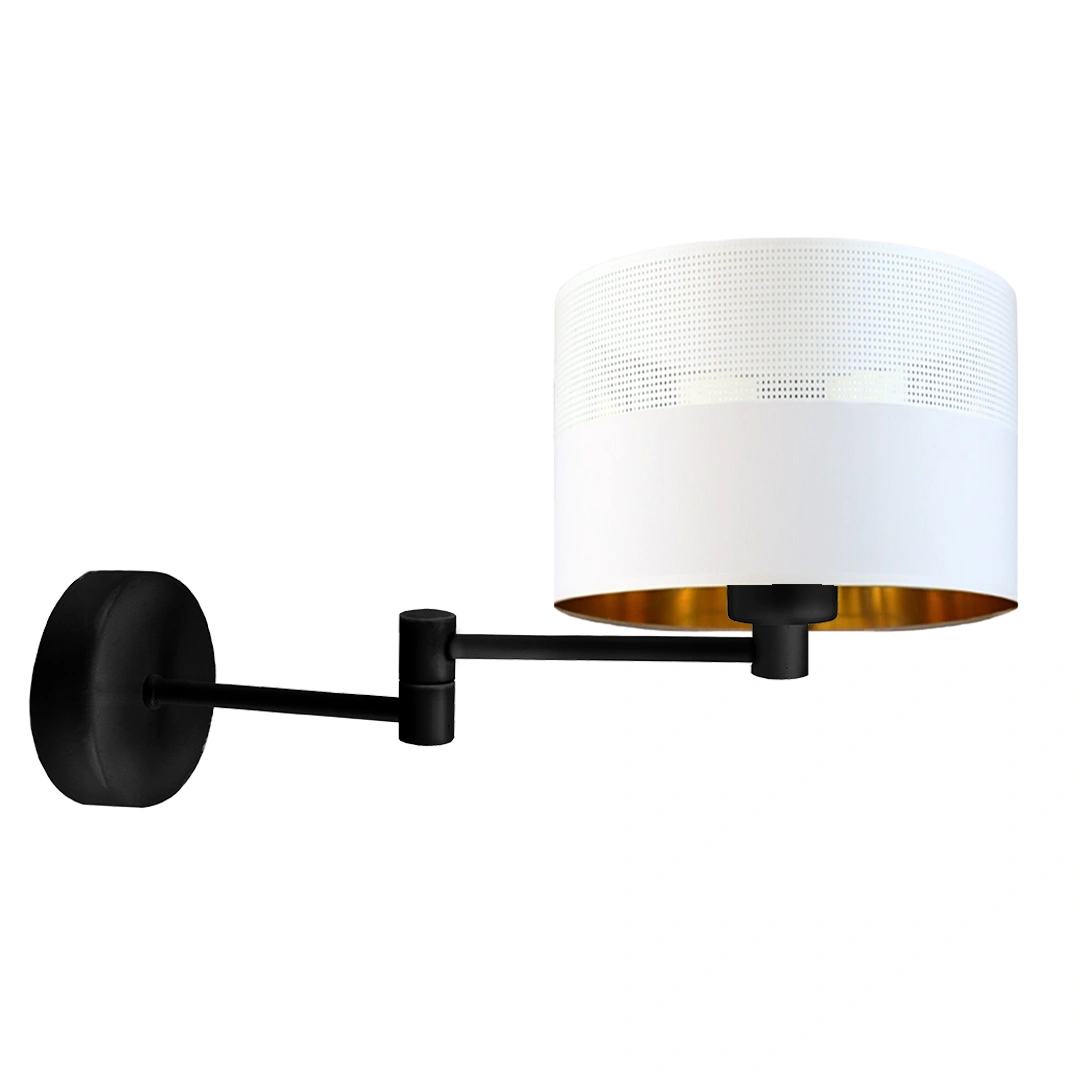 Lysne Brage Glam kinkiet z przegubem E27 abażur biały z ażurem i złotym wnętrzem, stelaż czarny